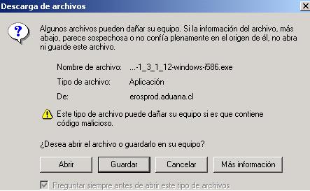 Paso 2: Se desplegará la pantalla de la Figura Nº 3 donde se debe seleccionar como destino la unidad C:\ y presionar el botón Guardar. En ese momento comenzará a ser descargado a su PC (Figura N° 4) el archivo que le permitirá instalar posteriormente el sistema.