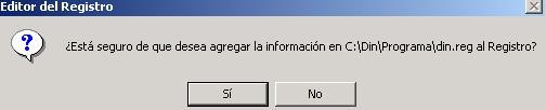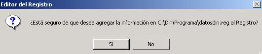 Paso 6: Ejecutar doble click sobre los archivos datosdin.reg y din.reg que se encuentra en la carpeta C:\Din\Programa Esta configuración permitirá conectar la aplicación a su base de datos local.