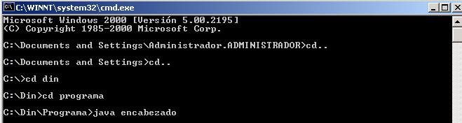 Para ejecutar el sistema se deben seguir los mismos pasos de siempre. En el DOS ir a carpeta Din/Programa y ahi ejecutar sentencia "java encabezado".