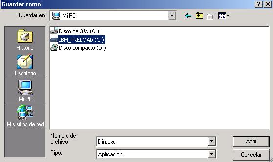 Paso 5: Buscar el archivo din.exe y hacer doble click. Con esta acción comenzará la descompresión del archivo, generando automáticamente una carpeta llamada Din en la unidad C.